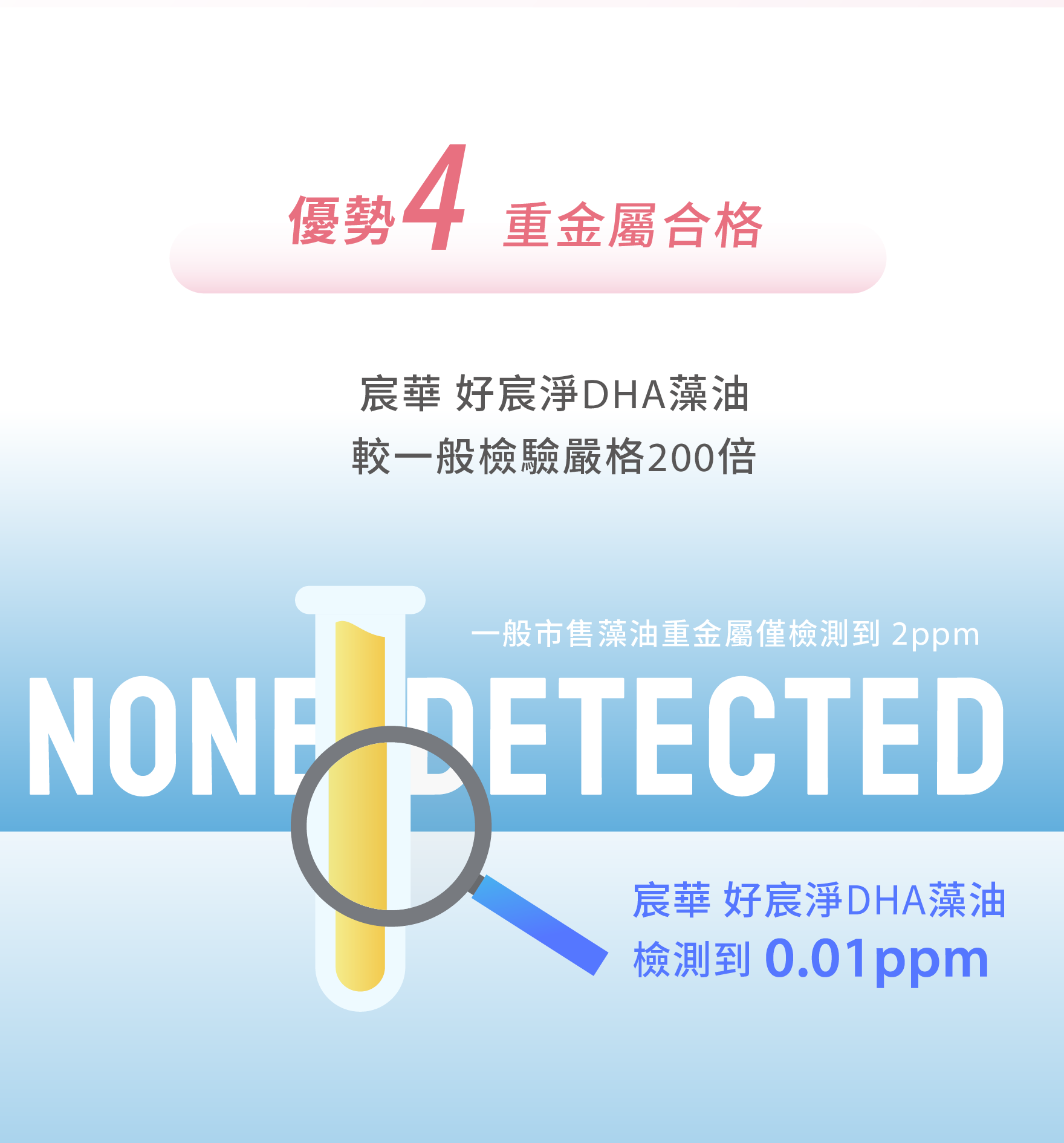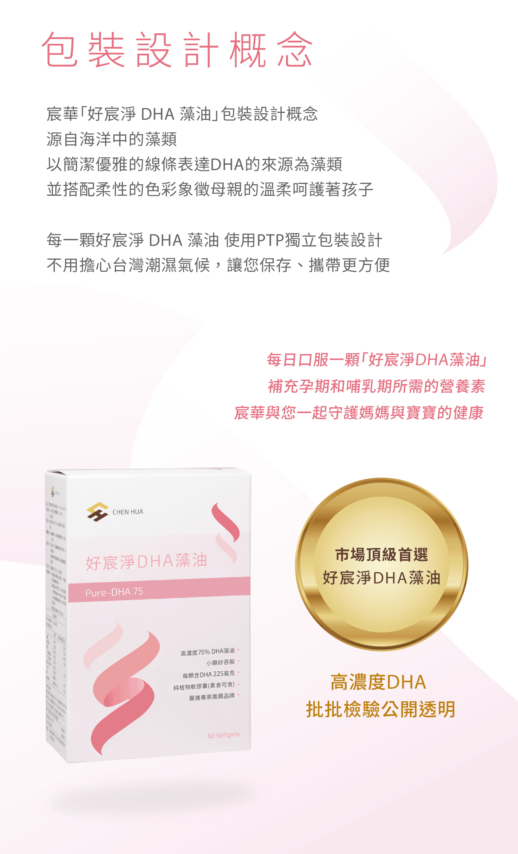 宸華好宸淨DHA藻油,純淨無污染,是孕期補充的絕佳選擇。宸華產品每批皆經嚴格檢驗,保證重金屬/塑化劑符合國際及台灣標準,檢驗報告公開透明是您最安心的選擇!