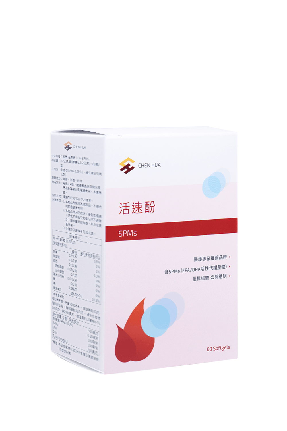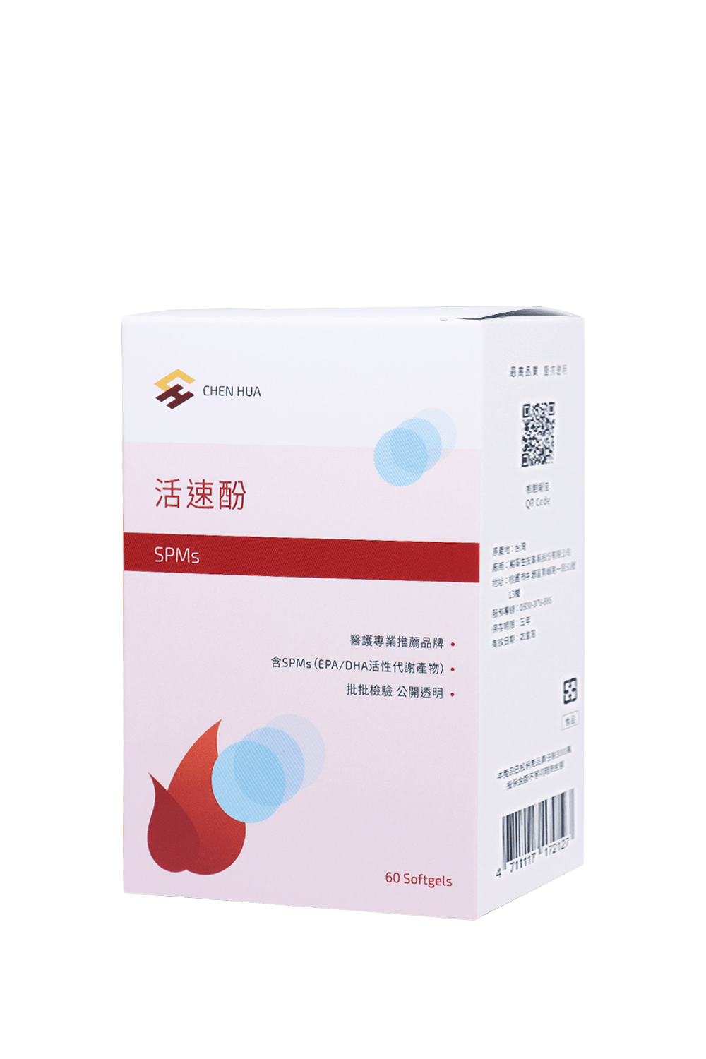 活速酚(專門促分解介質;SPMs)是來自 EPA/DHA 活性代謝產物,就像消防員手上的滅火器,能調節生理機能,加速回到身體平衡狀態。宸華 活速酚每批皆經嚴格檢驗,保證重金屬/塑化劑符合國際與台灣標準,檢驗報告公開透明(外包裝有檢驗報告連結)是您最好的選擇!